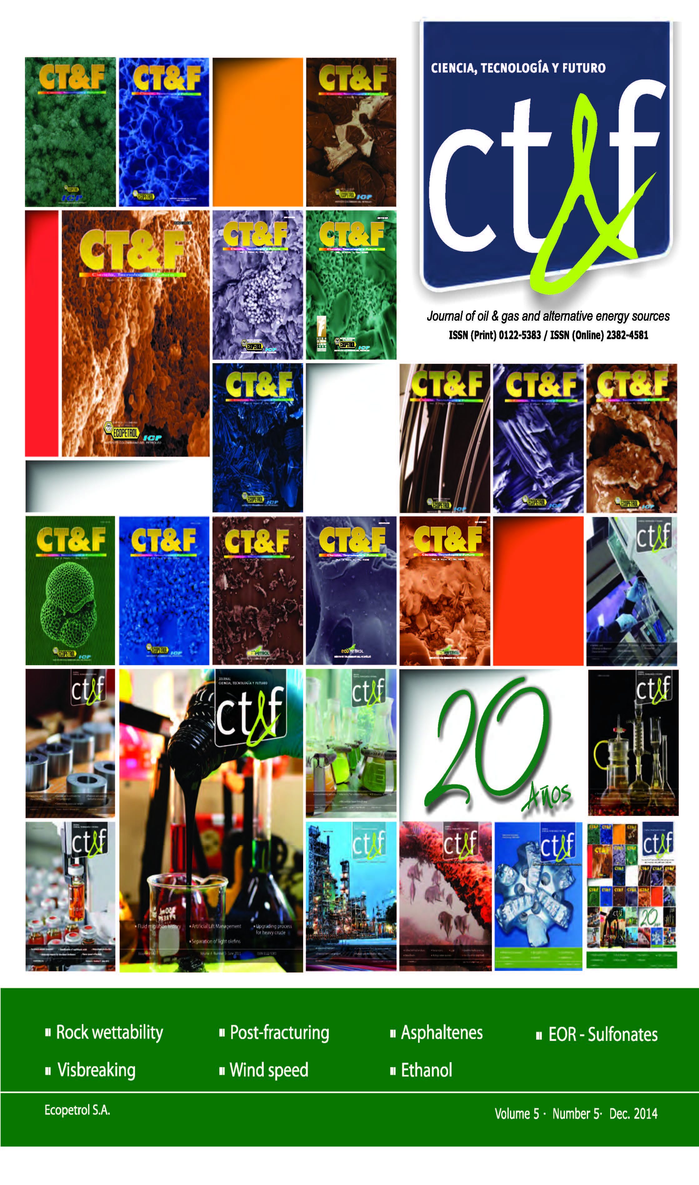 It includes articles in the areas of exploration, production, transport, and biofuels. The articles present the lithofacies analysis and depositional environment of the Galembo member of La Luna formation; the adsorption-desorption of n-C7 asphaltenes over micro and nanoparticles of silica and its impact on wettability alteration; the rigorous analytical solution of the basic concentration model for an injected fluid pipe; the anodic oxidation of pretreated vinasse using Boron doped diamond electrodes and the effect of corrosiveness of Biodiesel obtained from different raw materials on gray cast iron.